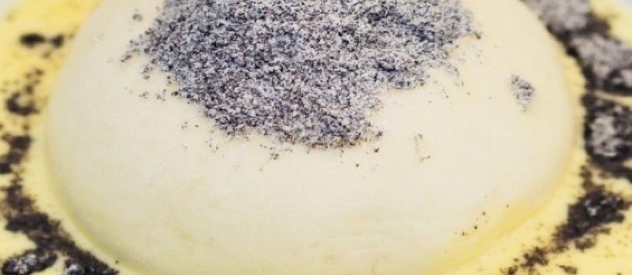 "GERMKNÖDEL MIT POWID'L" gefüllt, in Mohn - Staubzucker und Bourbon - Vanillesauce