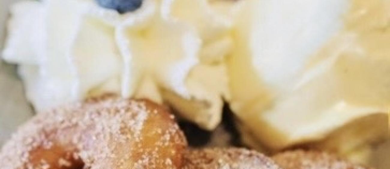 3 Stück "APFELKÜCHER'L" in Zimt - Zucker, mit einer Kugel Bourbon - Vanilleeiscreme und Schlagobers